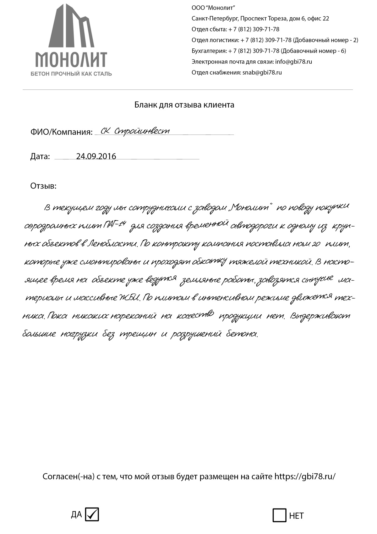 Да. Операторы нашего call-центра могут принимать заявки ежедневно, равно как и отгрузки мы можем осуществить в любой день недели, будь то даже праздничный день.